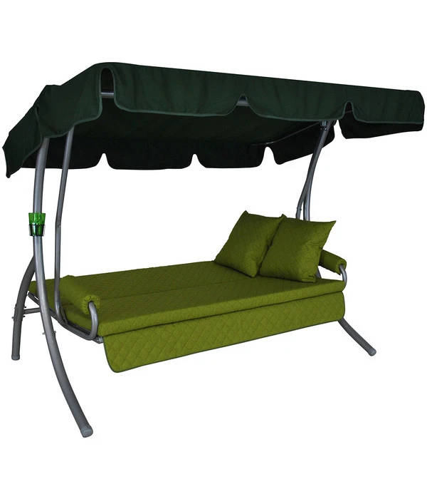 Bei Sonnenschein und frischer Luft entspannt es sich am besten im eigenen Garten. Eventuell haben Sie auch Gäste, mit denen Sie es sich gemütlich machen wollen. Auf der Angerer Trend Joy Hollywood-Schaukel Apfelgrün können Sie ruhige Stunden alleine verbringen oder mit 2 weiteren Personen. Die Trend Joy Hollywoodschaukel der Marke Angerer im kräftigen Apfelgrün weist zahlreiche praktische Eigenschaften auf. So ist beispielsweise die Rückenlehne abklappbar, sodass eine große Liegefläche entsteht. Die Auflagen haben einen Reißverschluss, Sie können die Bezüge also problemlos reinigen. Weiterhin sind die Kunststoffsitze witterungsbeständig, sie müssen nicht nach jeder Benutzung in das Hausinnere geschafft werden. Das Gerüst der Schaukel besteht aus Stahl, es ist verzinkt bzw. pulverbeschichtet. Das Zubehör ist aus Polyester gefertigt und die Kissenstärke beträgt 9 Zentimeter. Die Sitzfläche der Hollywood-Schaukel reicht für 3 Personen aus und ist 180 Zentimeter lang. Mit einem Gewicht von 50 Kilogramm kann man die Schaukel auch alleine beliebig im Garten platzieren.