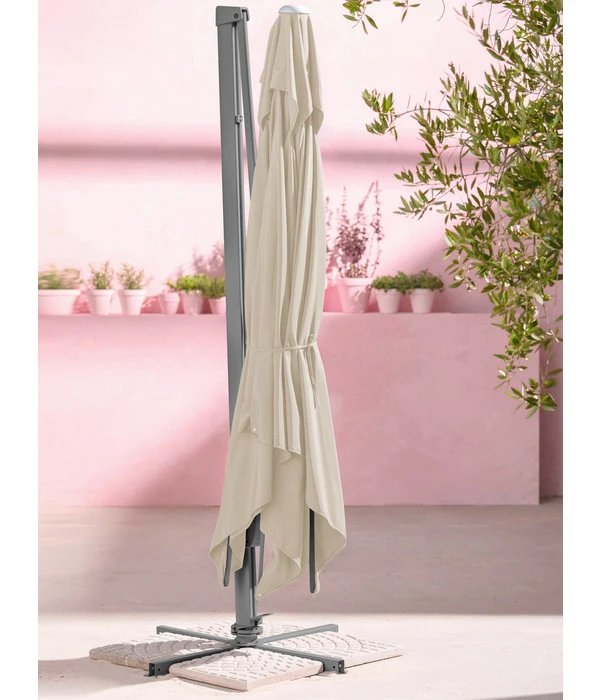Im Frühling können wir es kaum erwarten, die ersten warmen Sonnenstrahlen auf der Haut zu spüren, doch schon im Mai kann es plötzlich so heiß werden, dass wir in den Schatten flüchten. Wie gut, wenn Sie dann einen Sonnenschirm wie den Dehner Ampelschirm Zypern haben, der Ihren Gartensitzplatz perfekt beschattet! Eine Spezialität dieses Ampelschirms ist es, Ihnen dabei nicht ständig im Weg zu sein. Denn er hat keinen störenden Mittelfuß, sondern hängt den großen Schirm geschickt von der Seite über Ihren Sitzplatz. So können Sie den Raum unter dem Dehner Ampelschirm Zypern optimal für sich und Ihre Gartenmöbel nutzen. Genießen Sie vom Frühling bis zum Herbst den Schutz vor grellen Sonnenstrahlen sowie die angenehmen Temperaturen unter dem Dehner Ampelschirm Zypern!