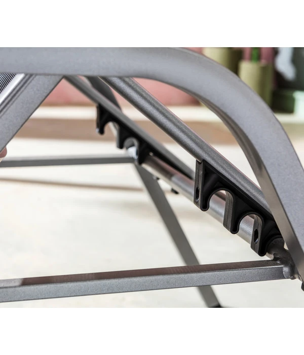Die Liege- und Rückenfläche ist bei der Dehner Gartenliege Chicago mit dem modernen Funktionsgewebe Textilene bespannt. Dieses Gewebe wurde mit Kunststoff ummantelt, um ihm die notwendige Robustheit und Wetterfestigkeit mit auf den Weg zu geben, ohne auf die typischen Eigenschaften eines Gewebes verzichten zu müssen. Deshalb ist die Liegefläche leicht flexibel, hautsympathisch und atmungsaktiv, so dass Sie auch an den heißesten Sommertagen nie unangenehm am Rücken schwitzen werden, wenn Sie sich auf der Liege ausstrecken.