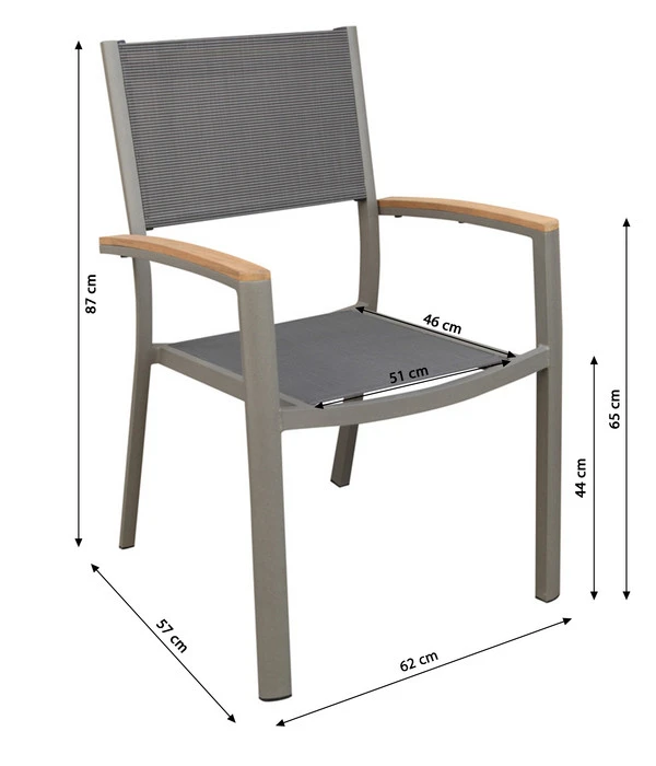 Wenn im Sommer nach einer stressigen Woche der Kalender den Freitag anzeigt und die Wettervorhersage bestes Sommerwetter für die nächsten Tage prophezeit, werden Sie bestimmt ein entspanntes Wochenende im Garten oder auf dem Balkon planen. Und wer könnte Sie besser durch dieses tolle Wochenende begleiten als der Stapelstuhl Colmar! Denn der Stapelstuhl Colmar ist so bequem, dass Sie am liebsten jede Stunde in ihm verbringen würden – vom Frühstück in der Morgensonne bis zum Mitternachtsimbiss unterm Sternenhimmel. Doch dieser Gartenstuhl wird Sie nicht nur mit seinem unvergleichlichen Sitzkomfort verwöhnen, sondern Ihre Terrasse auch mit seiner edlen Optik bereichern. Nicht ohne Grund ist die Kombination aus einem Leichtmetall-Gestell, modernem Funktionsgewebe und edlen Teak-Armlehnen, wie sie der Stapelstuhl Colmar zeigt, im Moment absolut Trend, denn sie vereint moderne Funktionalität mit wohnlicher Ausstrahlung.