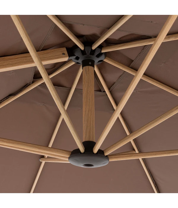 Schatten und Regenschutz bietet der Doppler Pendelschirm Aluwood
