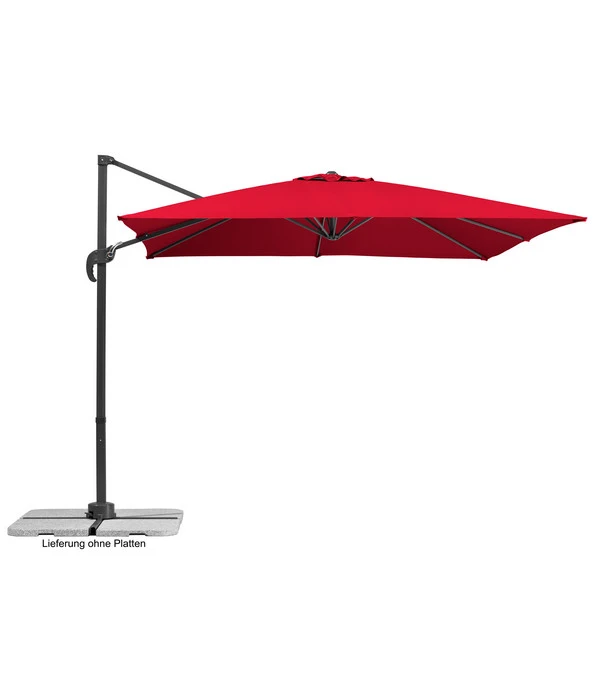 Sie genießen dank des Schirms von Schneider einen UV-Schutz von 50+. Als praktisch erweist sich die Tatsache, dass Sie ihn per Drehteller mit Fußpedal um 360° entlang des Mastes drehen und neigen können. Dadurch finden Sie stets die perfekte Position für jede Situation beim Relaxen. Außerdem punktet der Ampelschirm von Schneider mit einem intelligenten Materialmix aus Aluminium und Stahl, sodass er sehr leicht und transportabel ist, aber auch durch Robustheit überzeugt. Den Polyesterstoff des Schirmes können Sie problemlos abnehmen und ihn bei leichten Verschmutzungen effektiv per Hand reinigen. Entscheiden Sie sich jetzt für den Ampelschirm Rhodos Junior aus dem Hause Schneider, der mit Schutzhülle und Plattenständer geliefert wird, schnell aufgebaut ist und Sie vom ersten Moment an zum einen mit seiner Funktionalität, zum anderen aber auch mit seinem modernen Design begeistern wird.