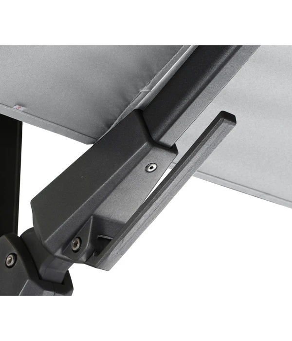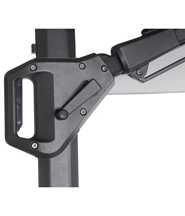 Der Schirm, der auf dem stabilen, wetterfesten Mast des Siena Garden Ampelschirm Sunset N+ schwebt, besteht aus einer besonders hochwertigen, dichtgewebten Polyester-Qualität (300g/m²), die Ihnen einen ausgezeichneten UV-Schutz von 50+ bietet. Zusätzlich wurde der Stoff mit Polyurethan beschichtet, sodass die Schirmfläche wasserabweisend ist. Das Aufspannen des großen Schirms gelingt dabei leicht mit einer robusten Aluminiumgusskurbel, vertikal kippen können Sie ihn über einen handlichen Schiebegriff. Das horizontale Kippen erfolgt durch einen Hebel. Die selbstspannenden Streben sorgen immer für einen faltenfreien und gleichmäßig gespannten Bezug.