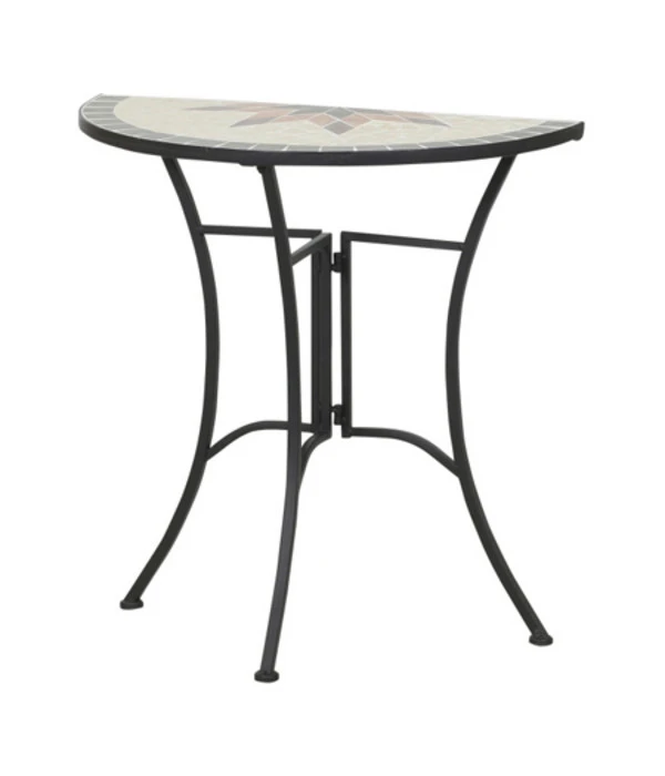 Mithilfe des hochwertigen Siena Garden Anstelltisches Stella bringen Sie viel südländisches Flair in Ihr Zuhause. Der schicke, zeitlose Wandtisch besteht aus einem schwarzen, pulverbeschichteten Stahlgestell und einer halbrunden Tischplatte in Mosaikoptik. Er eignet sich sowohl für den Innen- als auch den Außenbereich: Egal, ob er an der Hauswand, in der Küche oder im Flur steht, der Siena Garden Anstelltisch Stella besticht stets als elegante Ablagefläche für Blumen- und Kräutertöpfe. Auf einem kleinen Balkon stellt er einen idealen Kaffee- und Lesetisch dar: So können Sie auch auf kleiner Fläche den Sommer stilvoll genießen. Da der Siena Garden Anstelltisch Stella mühelos gereinigt werden kann, wird er Ihnen viele Jahre lang eine große Freude bereiten.