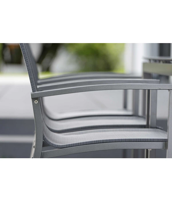 Das Gestell aus pulverbeschichtetem Aluminium macht den hochwertigen Stapelsessel Evoee von Stern besonders standfest, robust und über viele Jahre haltbar. Hinzu kommt die Sitzfläche aus atmungsaktiven Materialien, die nach einem kurzen Regenschauer rasch wieder trocknet. Schnell können Sie es sich also draußen wieder bequem machen, um die frische Luft und die angenehme Atmosphäre zu genießen. Verpassen Sie diese tolle Möglichkeit nicht und ordern Sie den Stapelsessel Evoee der Firma Stern am besten noch heute, um in Ihrem Garten mit noch mehr Gemütlichkeit zu punkten!