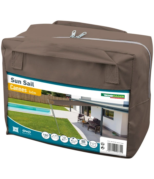 Wenn Sie sich bei gleißendem Sonnenlicht und hohen Außentemperaturen lieber im angenehmen Schatten aufhalten, ist das Windhager Sonnensegel Cannes genau das Richtige für Sie. Das hochwertige Produkt aus robustem, beschichtetem Polyester-Gewebe kann z. B. auf der Terrasse, dem Balkon oder im Garten eingesetzt werden, um sich vor intensiver Sonneneinstrahlung und der damit einhergehenden Hitze abzuschirmen. Die verstärkten Randsäume des wind- und wasserabweisenden Accessoires sorgen für einen festen Halt und gewährleisten, dass es auch bei starkem Wind nicht reißt. Ein besonderer Vorteil besteht darin, dass das Sonnensegel Cannes von Windhager Ihnen einen exzellenten UV-Schutz von 50+ bietet. Sie sind also vor der schädlichen UV-Strahlung geschützt und können trotzdem das schöne Wetter genießen – optimale Voraussetzungen für eine gelungene Freiluftsaison!