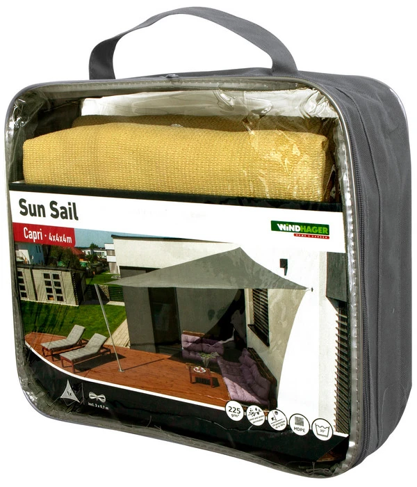 Das Sonnensegel von Windhager lässt sich ganz leicht montieren und aufstellen, weshalb Sie im Nu ein schönes, schattiges Plätzchen für sich und Ihre Familie haben. Natürlich ist auf Ihr neues Segel stets Verlass. Es besteht aus Polyethylen mit besonders hoher Dichte und wurde mit einem verstärkten Randsaum ausgestattet, der festen Halt gewährleistet. Außerdem kann das Sonnensegel auch optisch dank eines stilvollen und zeitgemäßen Designs überzeugen, um das Garten-Arrangement erstklassig abzurunden. Entscheiden Sie sich jetzt für das dreieckförmige Sonnensegel Capri von Windhager, das nicht zuletzt pflegeleicht in der Waschmaschine gereinigt werden kann.